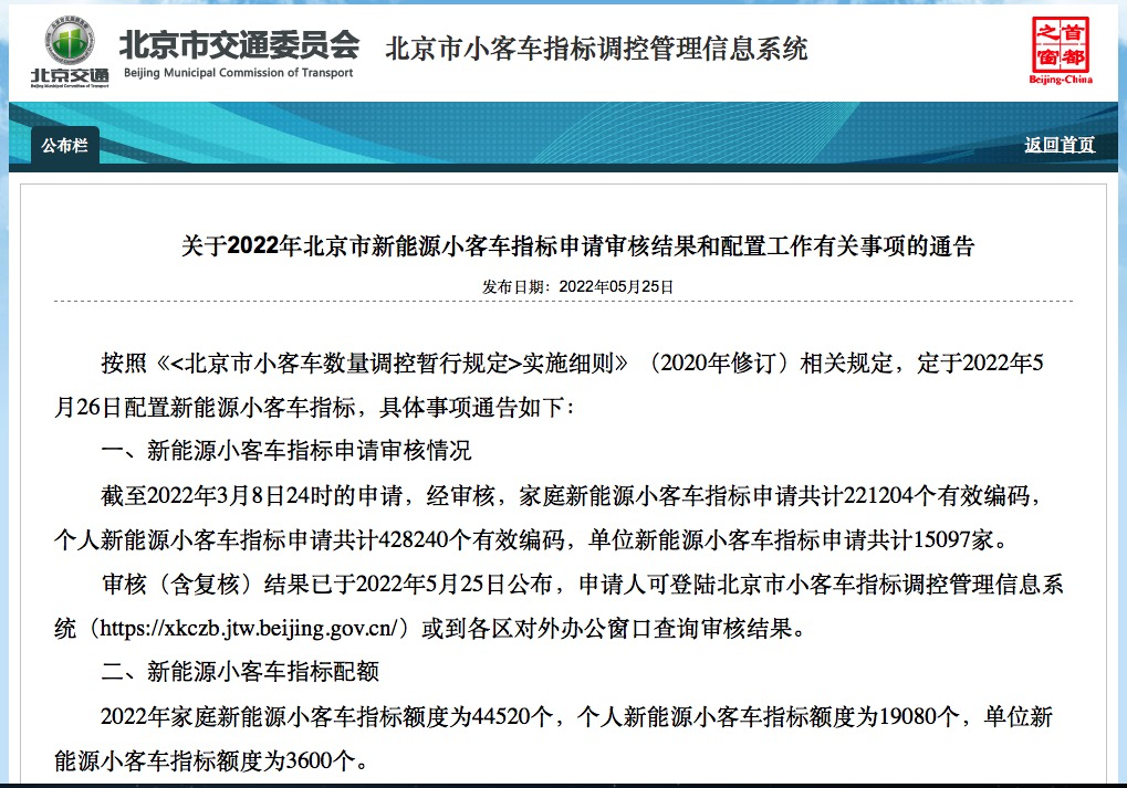 根据北京小客车指标调控管理办公室5月26日公布的家庭新能源小客车指标配置积分排序入围名单和个人新能源指标配置结果,家庭和个人新能源小客车指标配置为63600个。