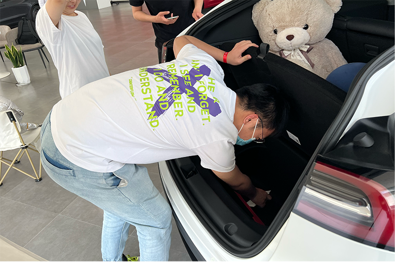 嘉宾在特斯拉Model Y后备箱内寻找“绿能明信片”
